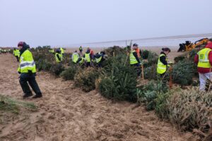 The project – led by The Wildlife Trust and the Environment Agency – uses donated Christmas trees and are recycled to create better coastal defence and habitats.